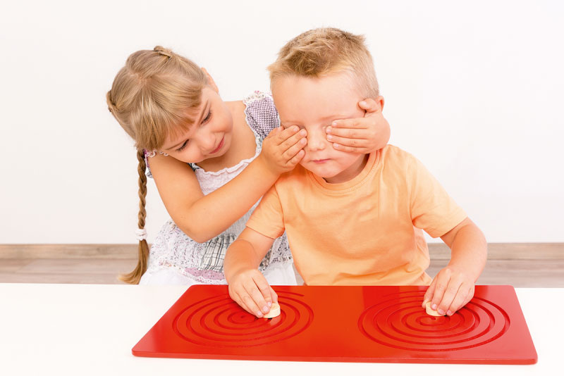 • zum Nachspuren mit Schiebeknöpfen zur Anregung beider Gehirnhälften