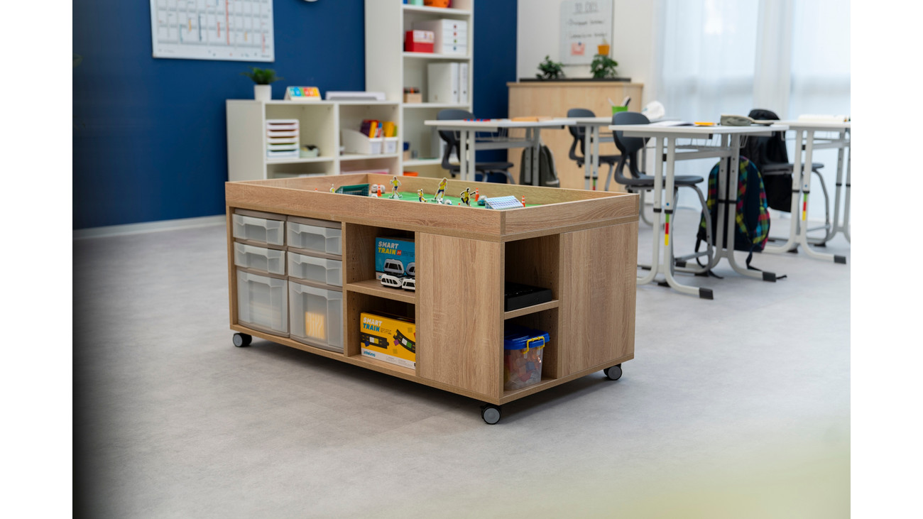 • mobile Staumöglichkeit mit 4 Rollen, feststellbar