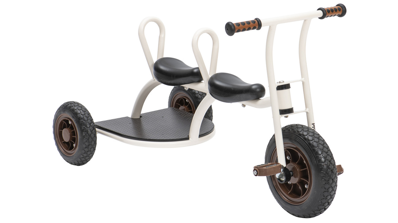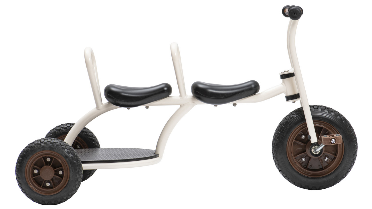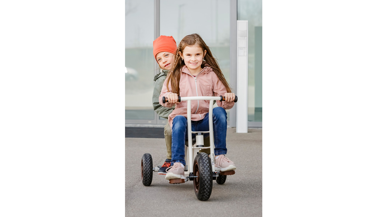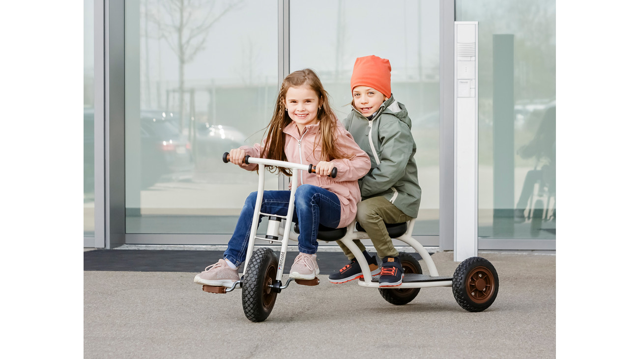 • wetterfester Kunststoffsitz und Griffe und Pedale mit Gumminoppen