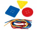 • 15 bunte Schnüre und 81 Kunststoffknöpfe in 3 unterschiedlichen Formen und Farben