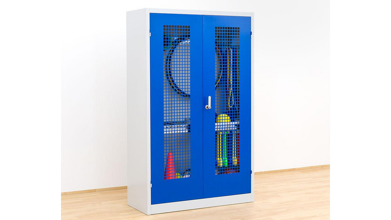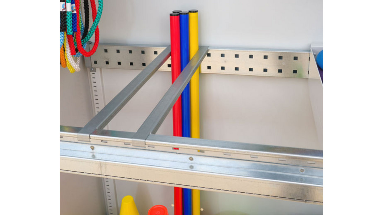 • höhenverstellbare Gitterkörbe z.B. für Bälle
