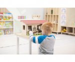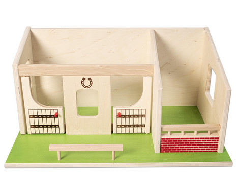 • mit abnehmbarem Dach, dass die Kinder von oben in den Stall greifen können