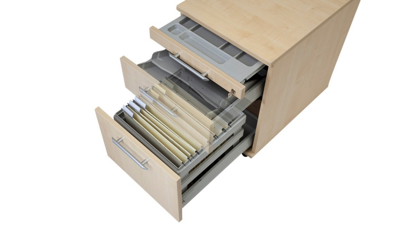 • 3 große Schubladen, Orga-Auszug und 1 Hängeregisterauszug