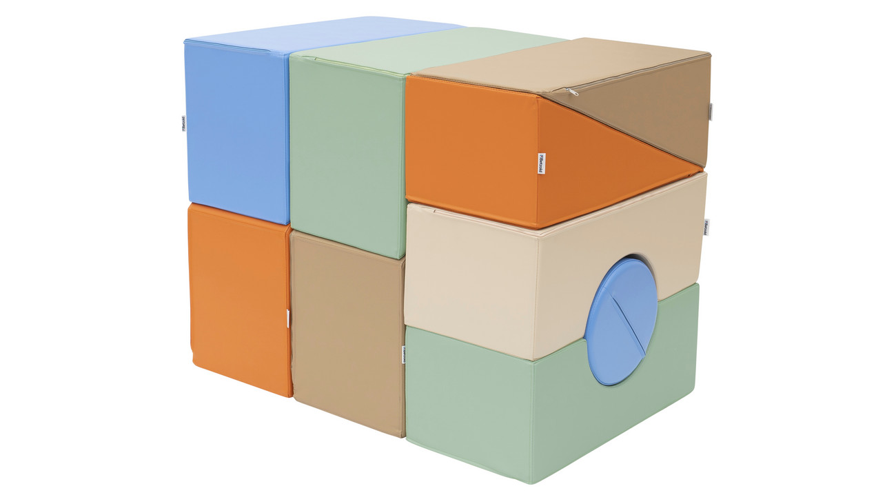 • 9 Softbausteine aus formstabilem Schaumstoff mit Kunstlederbezug