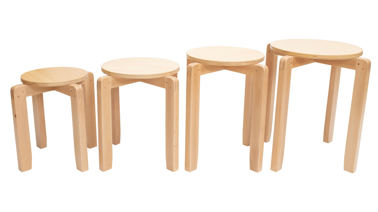 • klassischer Holzhocker in vielen Größen, ideal für KiTa oder Schule,