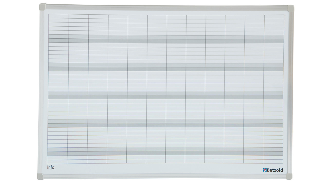 • Whiteboard-Jahresplaner mit 37 Zeilen und 12 Monatsspalten