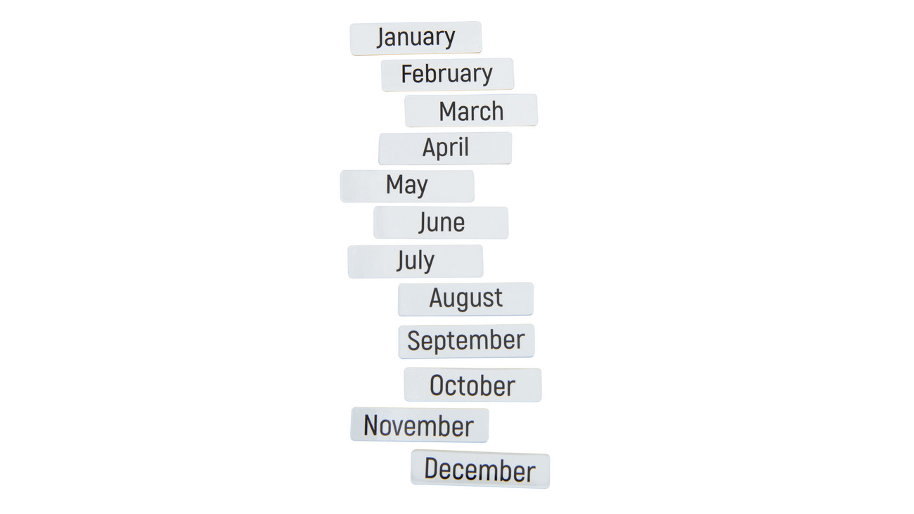 - 12 Monate, 6 x 1,5 cm (beidseitig bedruckt, Deutsch und Englisch)