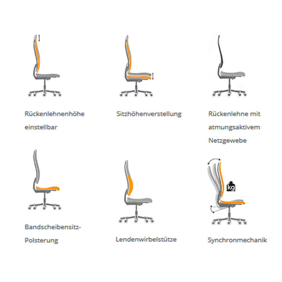 • spezieller Bandscheibensitz zur optimalen Stützung des Beckens beim Sitzen