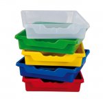 • 16 flache Ergo Tray Boxen aus bruchsicherem Kunststoff mit ergonomischem Griff