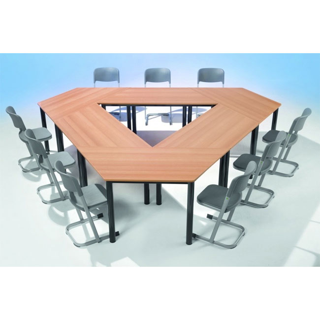 Wahlweise als Rechteck-, Quadrat- oder Trapeztisch in mehreren Größen.