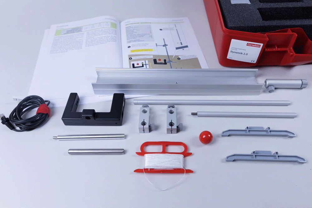 • 15 Versuche: 1- Geradlinig gleichförmige Bewegung, 2 - Newtonsche Gesetze - Teil 1, 3 - Newtonsche Gesetze - Teil 2, 4 - Weg-Zeit-Gesetz, 5 - Bewegungsdiagramme, 6 - Freier Fall-Fallbeschleunigung, 7 - Freier Fall-Fallgeschwindigkeit, 8 - Freier Fall-Fallhöhe, 9 - Waagerechter Wurf, 10 - Fadenpendel - Schwingungsdauer, 11 - Fadenpendel - g-Bestimmung, 12 - Fadenpendel - Dämpfung, 13 - Federpendel - Schwingungsdauer, 14 - Elastischer und unelastischer Stoß, 15 - Impulserhaltung