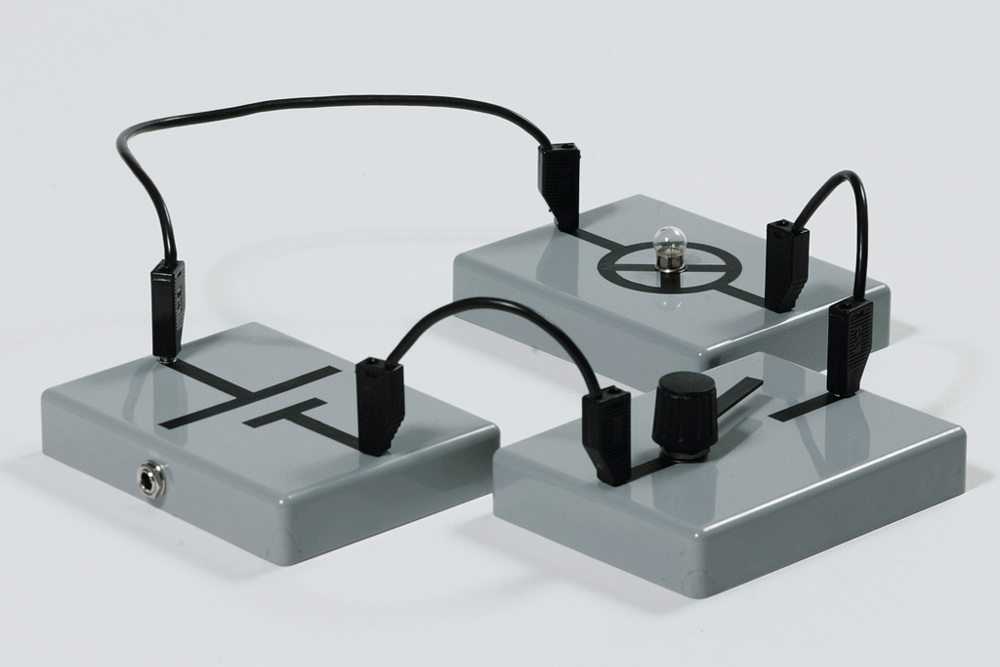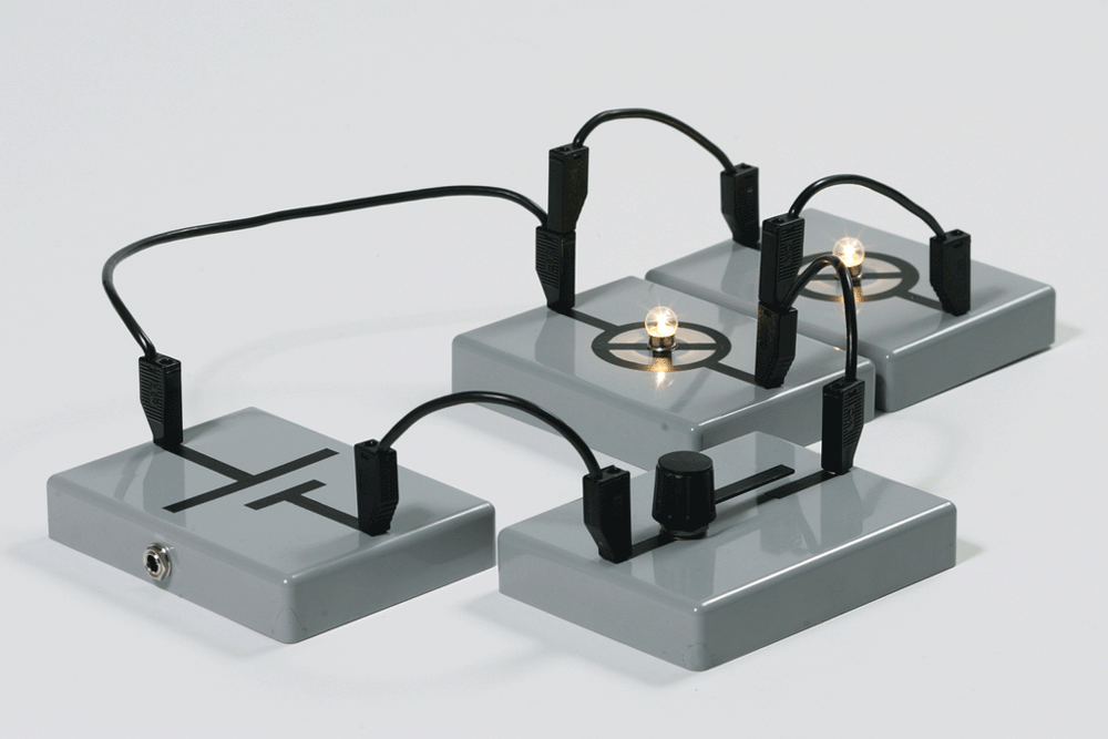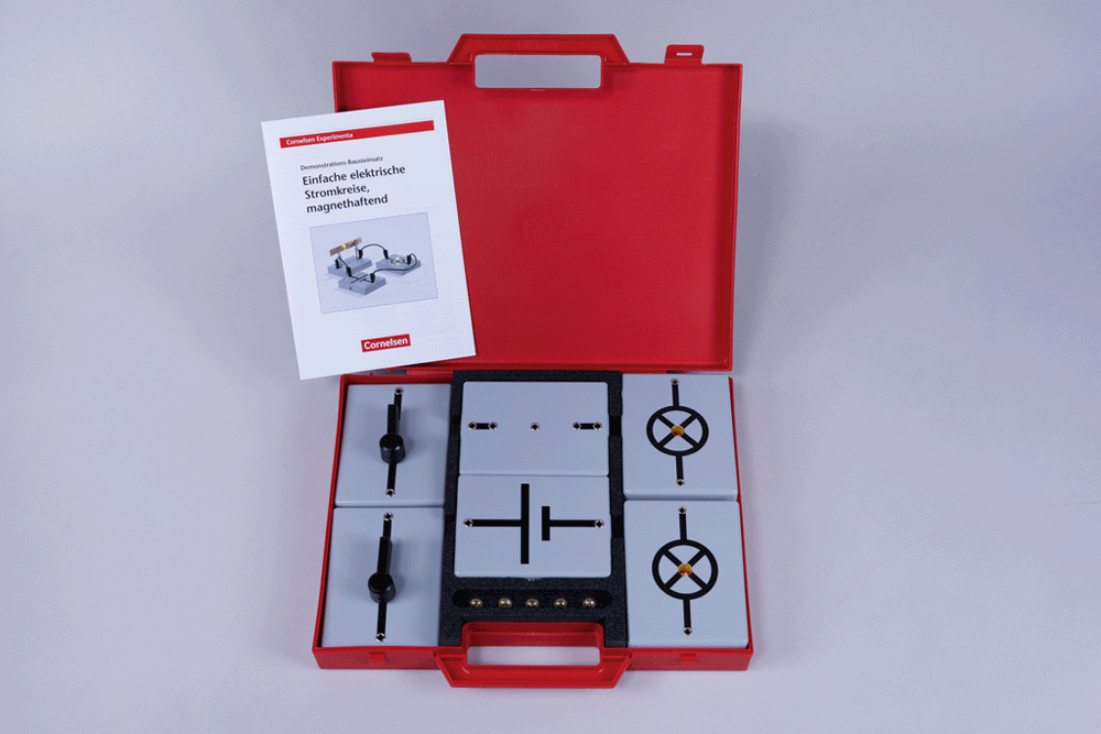 • das Set besteht aus verschiedenen Kunststoffsockeln mit Bauteilen, die sich zu einfachen Stromkreisen legen lassen