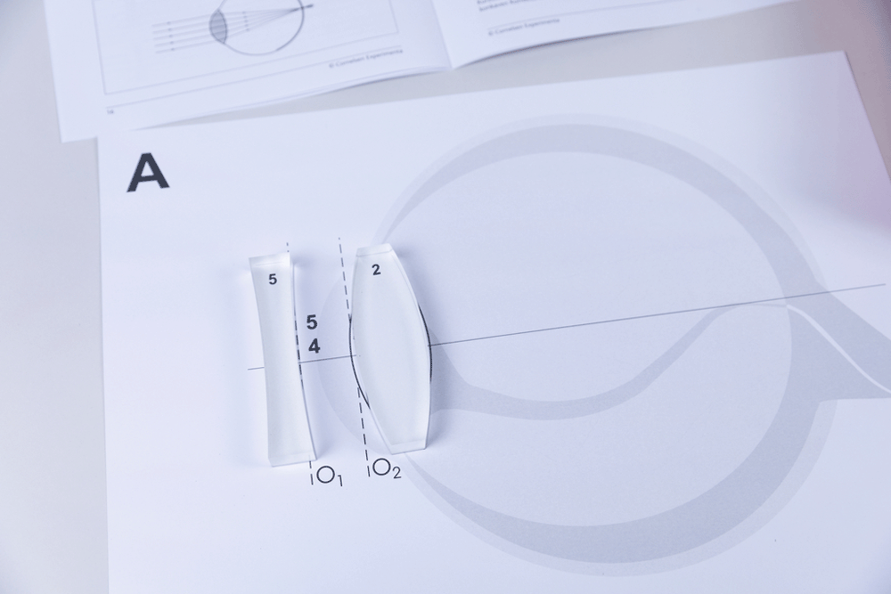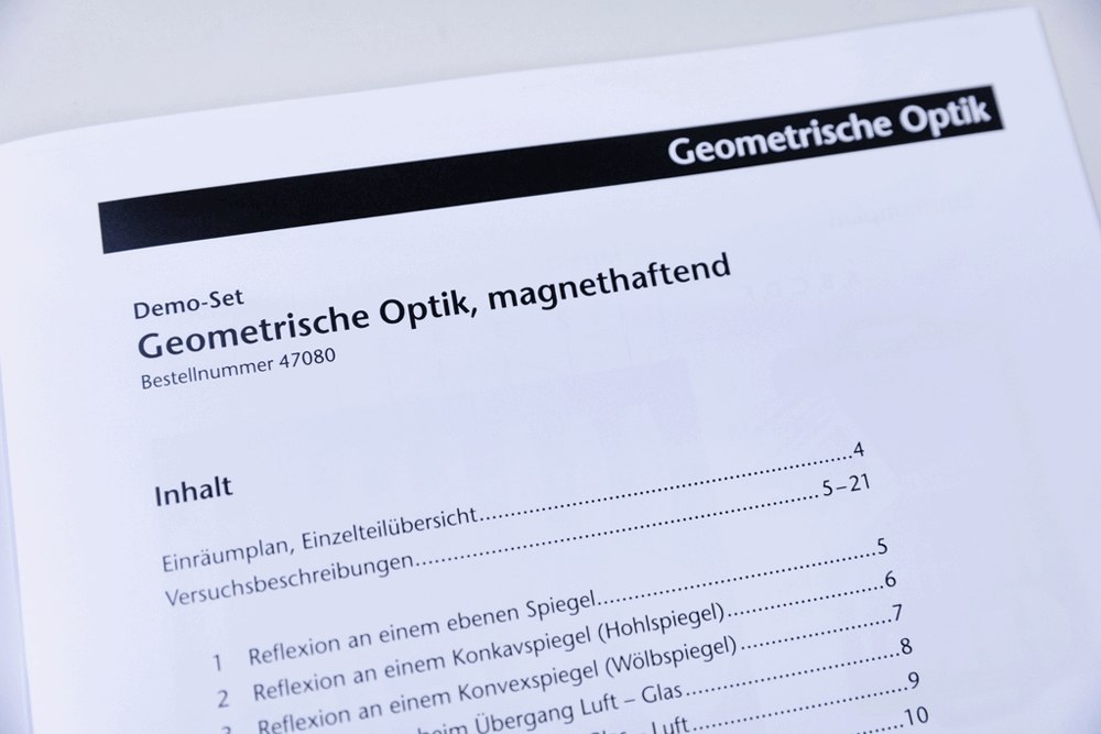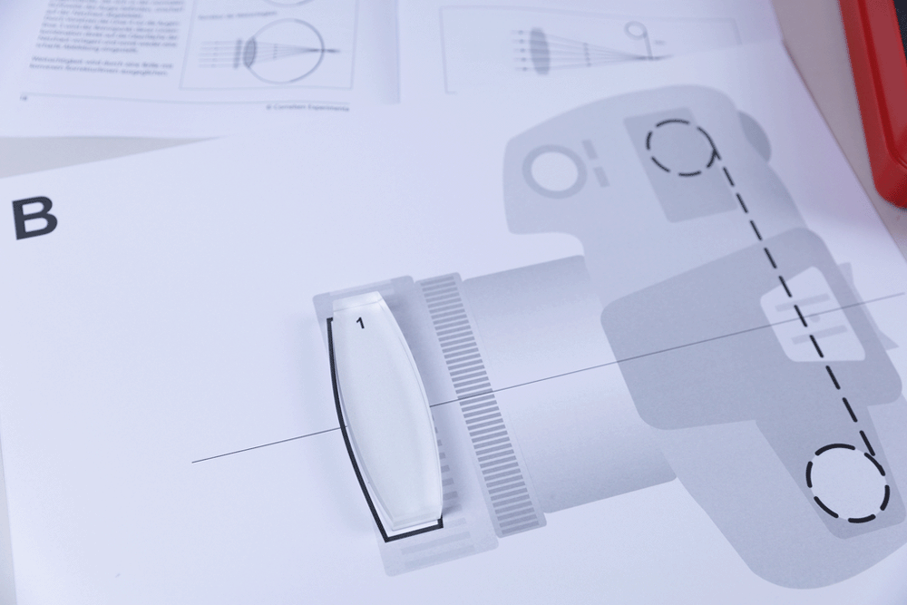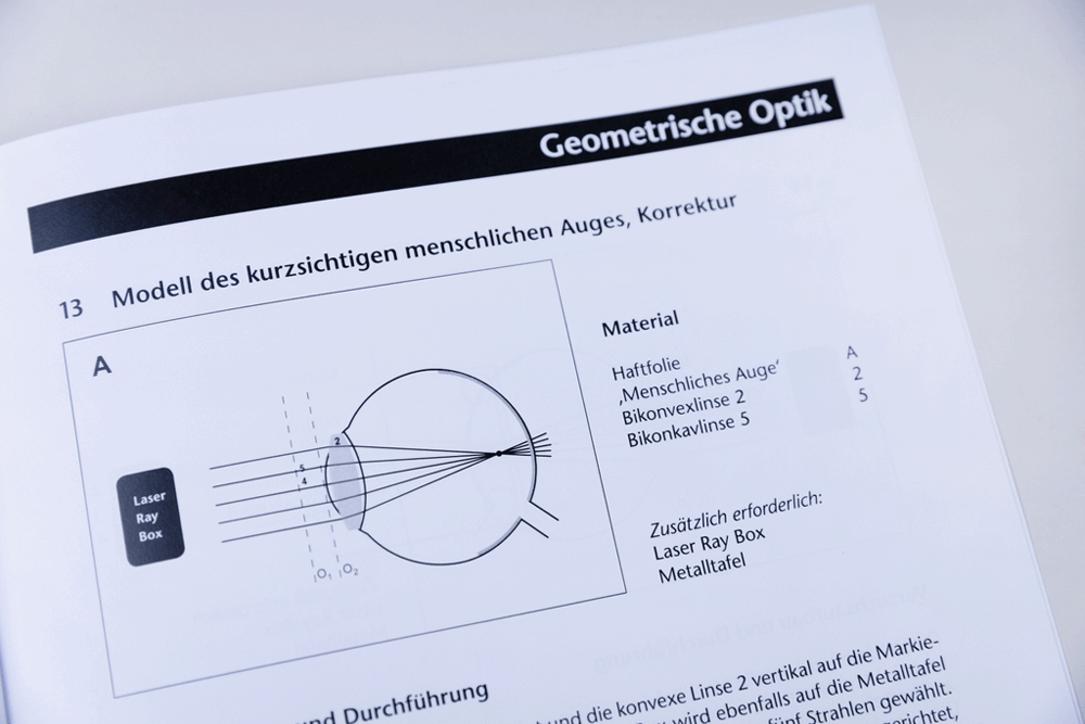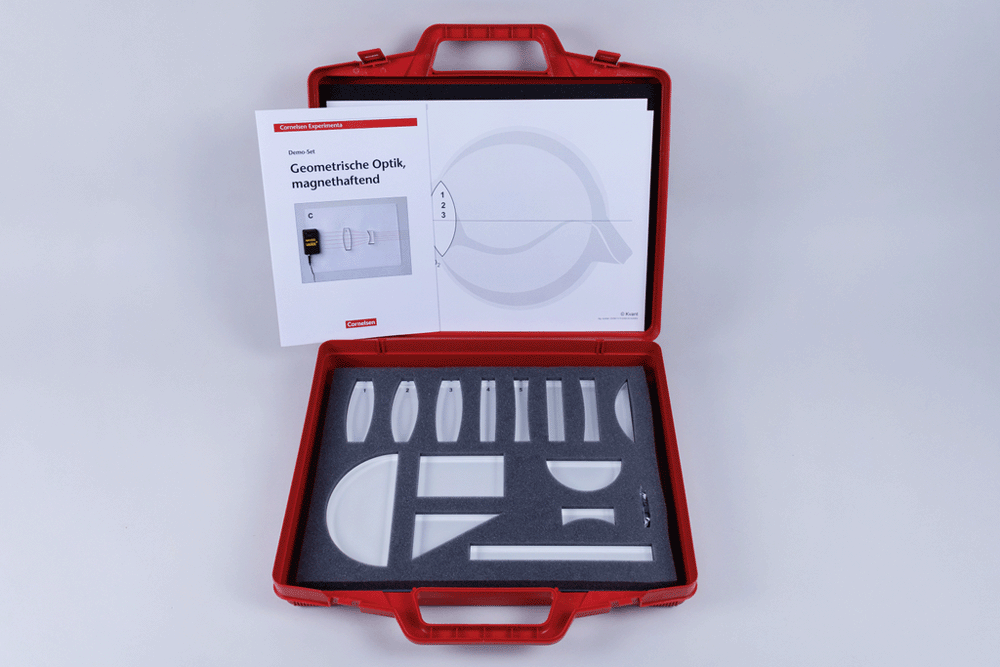 • mit ausführlicher Handreichung und weiteren magnetischen Hartfolien mit den Umrissen des menschlichen Auges, einer Kamera, einer optischen Scheibe, des Galilei-Teleskops und des Kepler-Teleskops