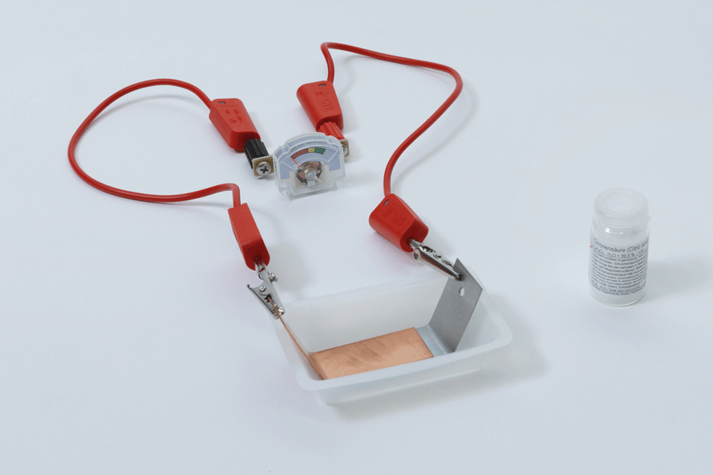 • als Indikator für die erzeugte elektrische Spannung fungiert das hochempfindliche Voltmeter
