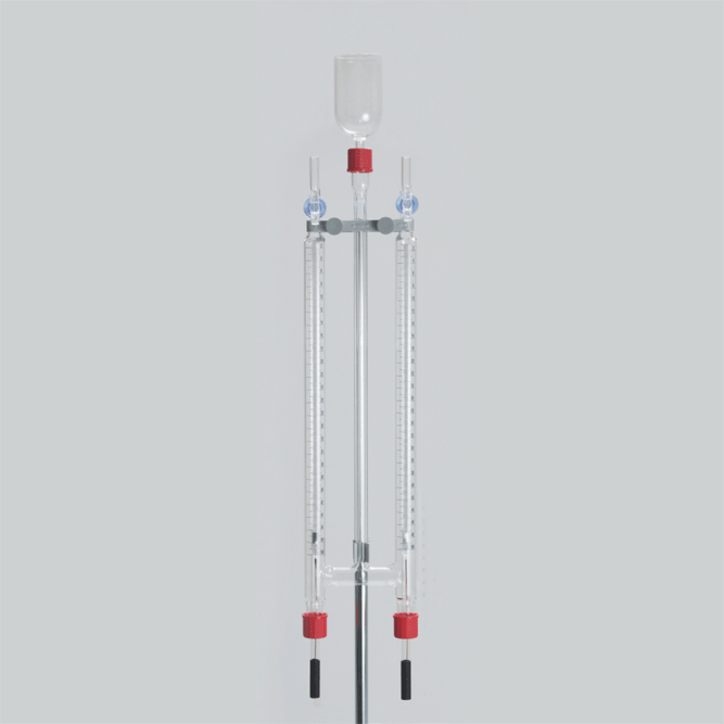 • besteht aus zwei graduierten Gasauffangröhren mit je einem Glashahn und GL-18-Anschlüssen für die einsteckbaren Elektroden