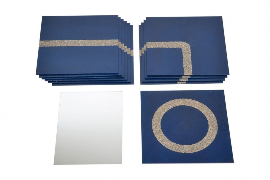 11 Wegplatten, davon 4 Kurvenplatten und 1 Zielplatte, 1 Spiegel