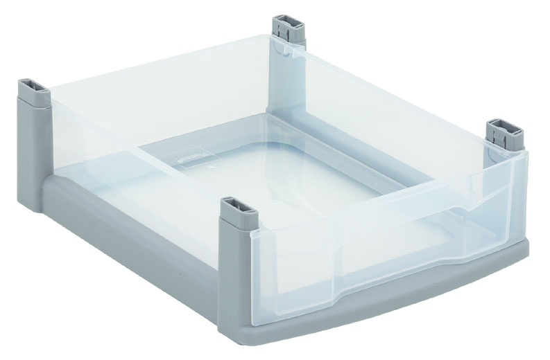- Flexeo Schubladen-Box, transparent, inkl. Rahmengestell, grau;