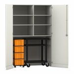 • 6 Fächer (4 höhenverstellbare Fachböden), 1 Rollcontainer mit 4 großen