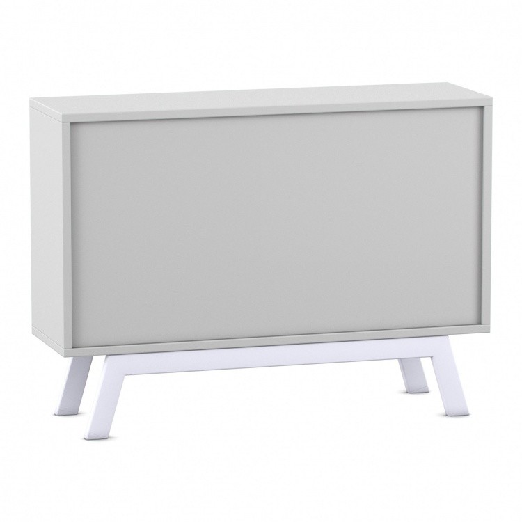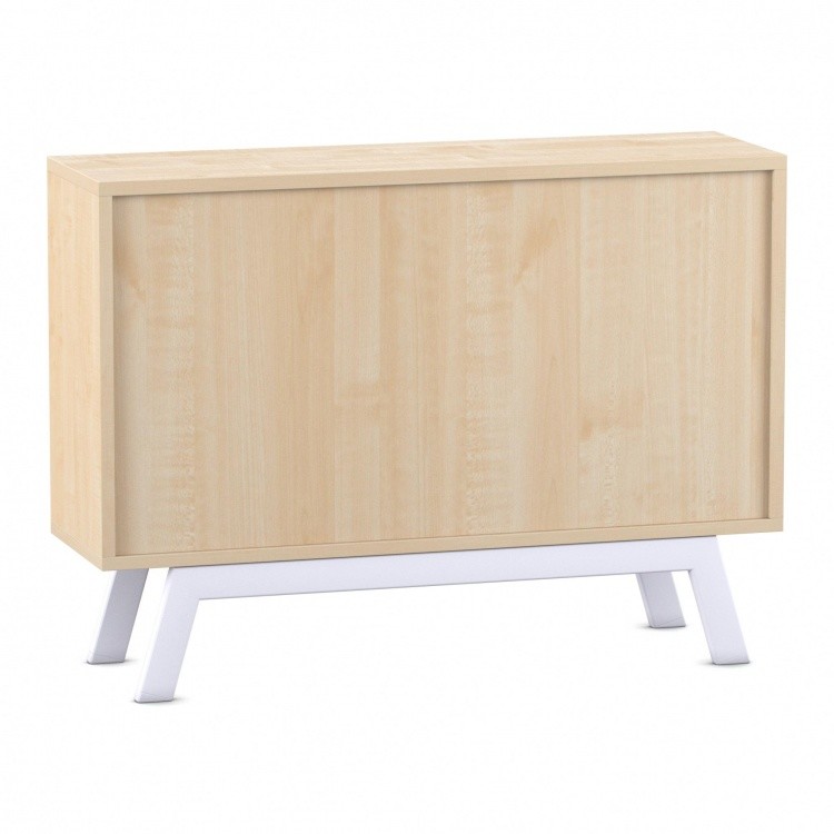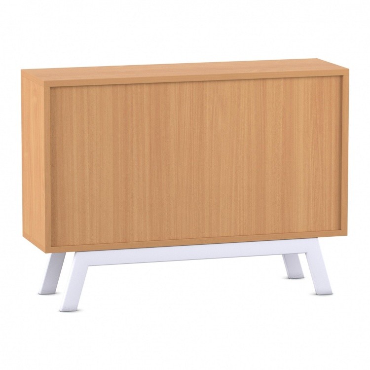 • 8 mm starke Rückwand aus Dekorplatte und stabile, weiße Stahlbeine