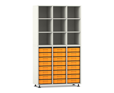 Lieferumfang: Regal mit 24 kleinen Boxen/Schubladen