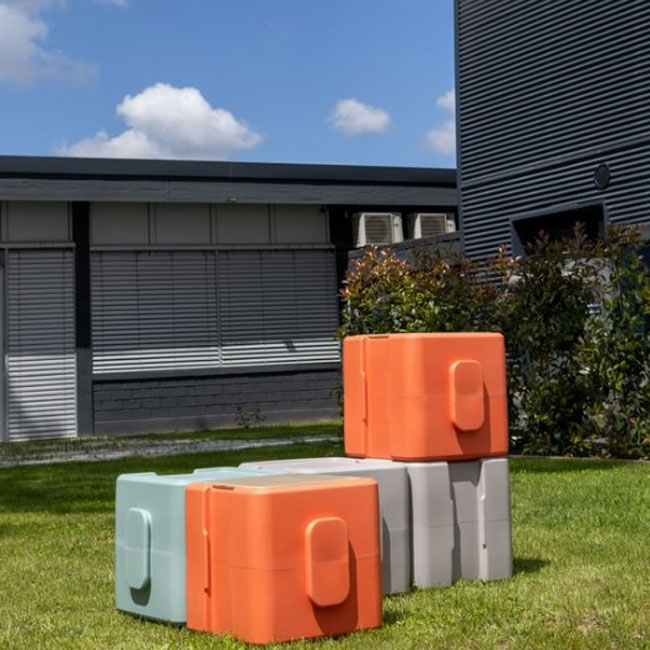 • innovativer Hockerwürfel aus Kunststoff in 3 Farben