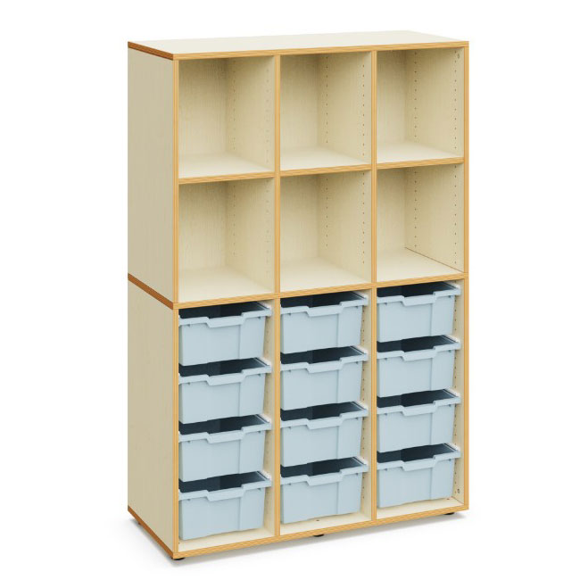 • praktisches Regal mit Boxen und offenen Fächern