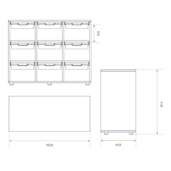 • 12 hohe Kunststoff-Boxen, wahlweise in 4 Farben