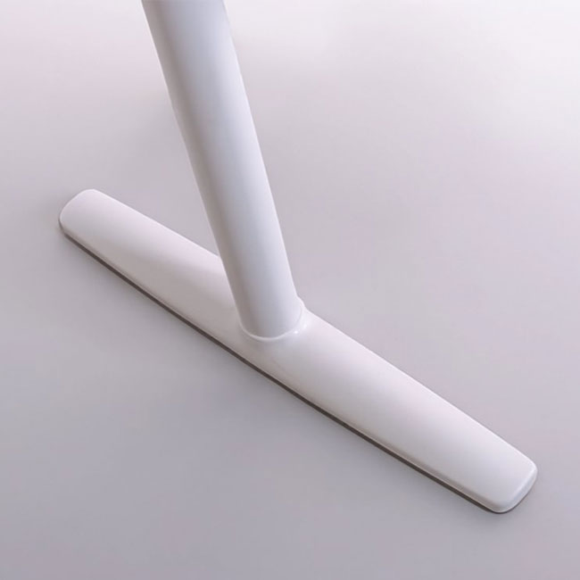 • solides Metallgestell mit Bodenausgleichsschrauben und abgerundeter Tischplatte