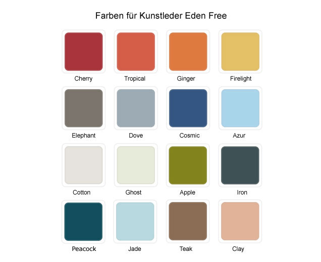 • Lehnen und Wangen der Sitzflächen in 16 verschiedenen Farben zur freien Auswahl