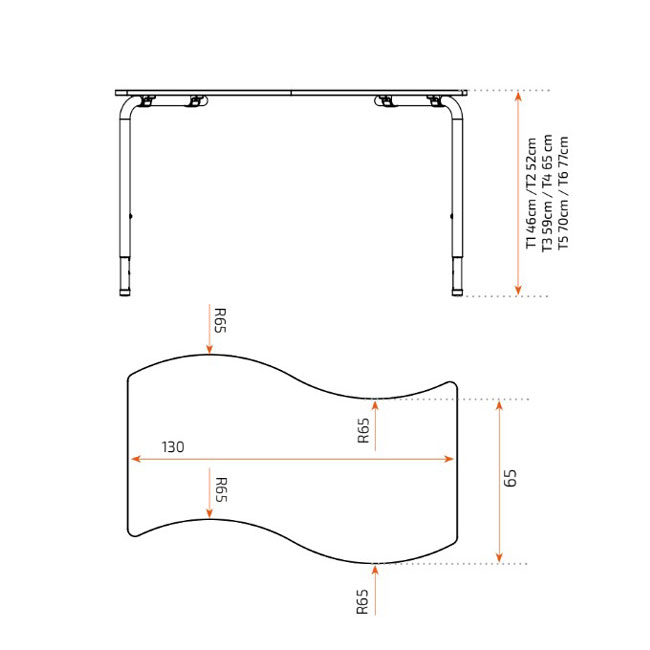 • Schüler-Zweiertisch in geschwungener Form