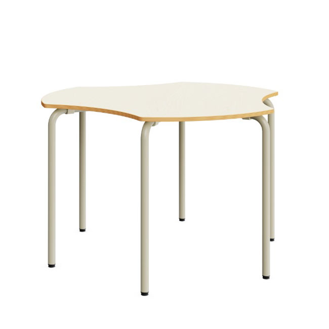 • Metallgestell mit Bodenausgleichsschrauben und Tischplatte mit Schutzkante