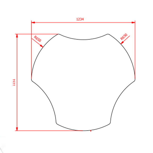 • sechseckige Tischplatte mit 3 Körperausschnitten