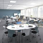 • 18 mm starke Tischplatte mit Melaminharzbeschichtung und abgerundete Kanten