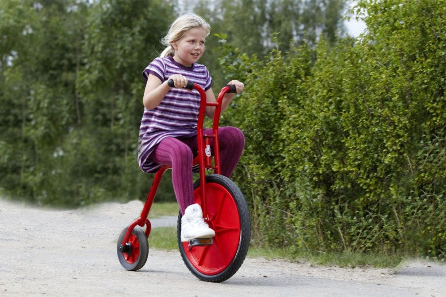 • Zweirad mit extra-großem Vorderrad und kleinem Hinterrad
