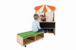 • Puppentheater Stoffvorhang, Kreidetafel und Sitzbank